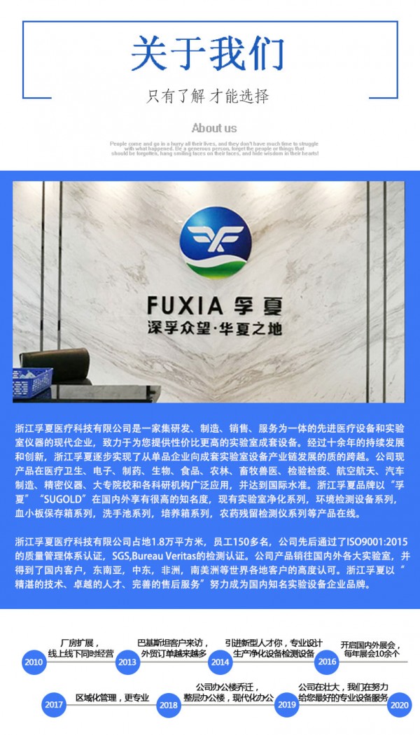 浙江孚夏醫(yī)療科技有限公司是一家集研發(fā)、制造、銷售、服務(wù)為一體的醫(yī)療設(shè)備和實(shí)驗(yàn)室儀器的現(xiàn)代企業(yè),致力于為您提供性價(jià)比高的實(shí)驗(yàn)室成套設(shè)備。經(jīng)過十余年的持續(xù)發(fā)展和創(chuàng)新,浙江孚夏逐步實(shí)現(xiàn)了從單品企業(yè)向成套實(shí)驗(yàn)室設(shè)備產(chǎn)業(yè)鏈發(fā)展的質(zhì)的跨越。公司現(xiàn)產(chǎn)品在醫(yī)療衛(wèi)生、電子、制藥、生物、食品、農(nóng)林、畜牧獸醫(yī)、檢驗(yàn)檢疫、航空航天、汽車制造、大專院校和各科研機(jī)構(gòu)廣泛應(yīng)用,并達(dá)到水準(zhǔn)。浙江孚夏品牌以“孚夏”“SUGOLD”在國(guó)內(nèi)外享有很高的知名度,現(xiàn)有實(shí)驗(yàn)室凈化系列,環(huán)境檢測(cè)設(shè)備系列,血小板保存箱系列,洗手池系列,培養(yǎng)箱系列,農(nóng)藥殘留檢測(cè)儀系列等產(chǎn)品在線。