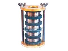 將試樣放入環(huán)刀內(nèi)填滿。上下兩面刮平,并貼上濾紙,放在兩塊透水石中間,將五個(gè)(根據(jù)需要可少于五個(gè))試樣疊放,用蝶型螺母將透水石、環(huán)刀夾緊。