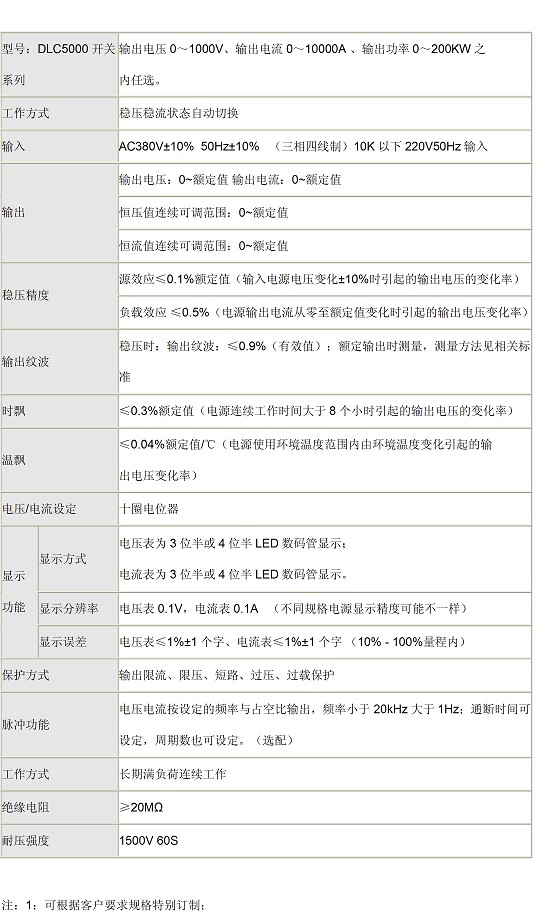 一)主要性能特點DLC5000開關(guān)直流穩(wěn)壓穩(wěn)流開關(guān)電源具有效率高,可靠性高、維護方便等優(yōu)點,機箱結(jié)構(gòu)緊湊,防腐與散熱也做了多方