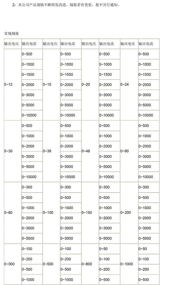 規(guī)格范圍: 輸出電壓0~1000V、輸出電流0~10000A 、輸出功率0~200KW之 內(nèi)任選。