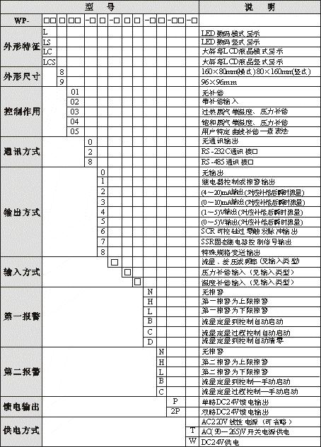 3、如用戶選擇特定曲線補償輸入(查表法)時,請在訂貨時提供相關(guān)技術(shù)參數(shù)或密度表格。