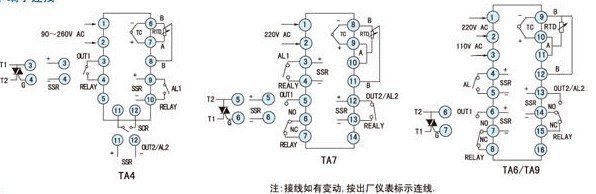 TA4:AC 90-260V TA6/TA7/TA9: AC:110V/220V±15%,50/60HZ功耗;≤5VA |