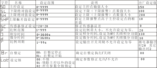 以下字符每按一次SET鍵后依次出現(xiàn),根據(jù)不同功能有些字符可能在你所選用的儀表中不存在。 |