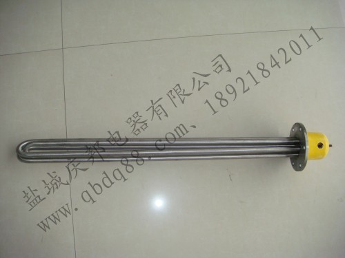 法蘭式加熱管結(jié)構(gòu):將多根金屬加熱管焊接在法蘭上集中加熱,主要用于敞開式、封閉式的溶液箱和循環(huán)系統(tǒng)中加熱用。法蘭式加熱管產(chǎn)