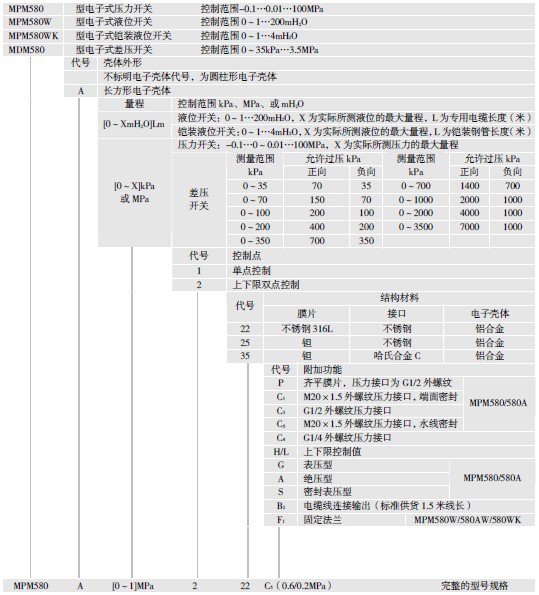 MDM580型差壓開關(guān) MDM580A型壓力開關(guān)