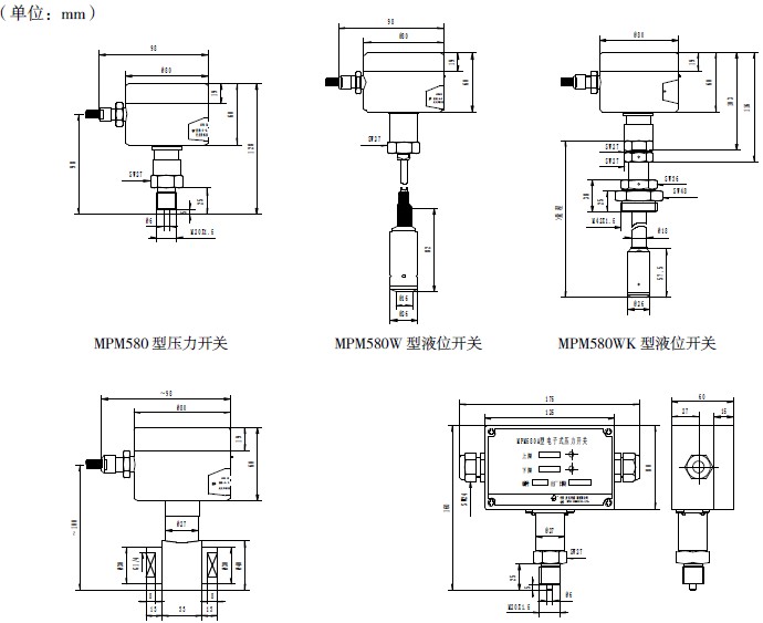 MPM/MDM580系列電子式壓力/液位/差壓開關(guān)根據(jù)產(chǎn)品所設(shè)定的控制接點(diǎn)值提供多兩個(gè)開關(guān)信號(hào),實(shí)現(xiàn)對(duì)工業(yè)現(xiàn)場(chǎng)壓力、液位及差壓的開關(guān)量控制。廣泛應(yīng)用于化工、機(jī)械、水文、電力等系統(tǒng)的壓力控制和自動(dòng)化過程控制系統(tǒng)。