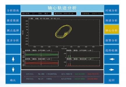 通過與在線傳感器連接,可以做軸心軌跡、二維息、息譜分析,可用于確定軸心的動方向,這對判斷是否存在動靜磨擦故障時是有用的。