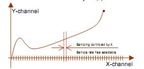 Y和X數(shù)據(jù)同步被儲(chǔ)存,且存取數(shù)量是通過測(cè)試時(shí)間變化(采樣時(shí)間)來決定的。