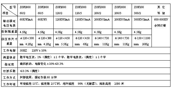 ZGF- 2000系列便攜直流高壓發(fā)生器是公司與澳大利亞ADELONG及美國HYPER EQUIP公司技術合作采用技術結合國情研制的面向的高可靠度、高品位、真正便攜的試驗設備、是電力部門,廠礦企業(yè)動力部門、發(fā)電廠氧化鋅避雷器、電力電纜、發(fā)電機、變壓器、開關等設備進行直流高壓試驗。是21世紀理想的換代產(chǎn)品。
