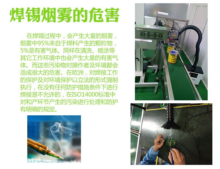 2在錫爐焊接工位,由于煙罩采用耐高溫材質(zhì),烤不爛,燙不爛,15-20CM煙罩范圍內(nèi)可全部吸走。