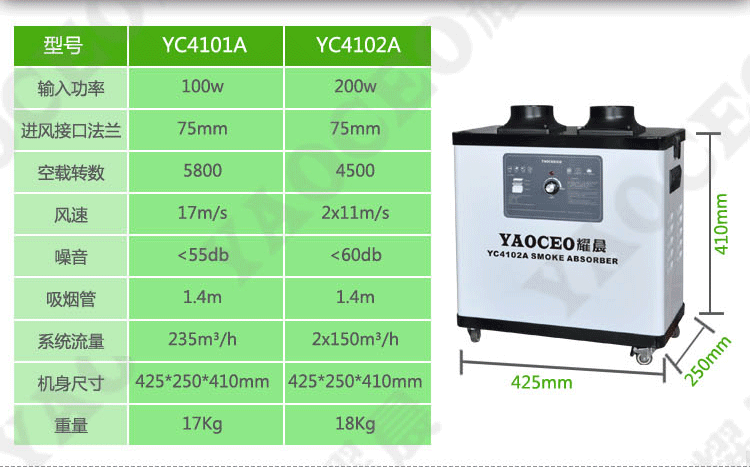 耀晨YC4102煙霧凈化過濾系統(tǒng),采用了可變單雙工位設(shè)計(jì)和三層過濾裝置,包括初效,中效和主效過濾器。HEPA過濾部分和氣體過濾部分組成主效過濾器,大面積墊式初效過濾器能有效過濾顆粒較大的粉塵,延長(zhǎng)主效的使用壽命。