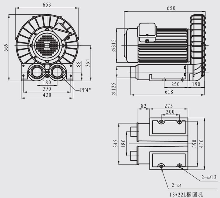 全風環(huán)形高壓鼓風機RB-1515尺寸圖如下: