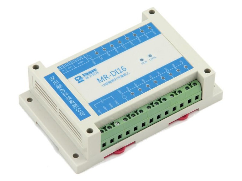 MR-DI16為RS485型隔離16通道開(kāi)關(guān)量輸入(DI)信號(hào)采集設(shè)備,2組相互隔離的開(kāi)關(guān)量輸入通道,可實(shí)現(xiàn)干接點(diǎn)(開(kāi)關(guān)觸點(diǎn))信號(hào)