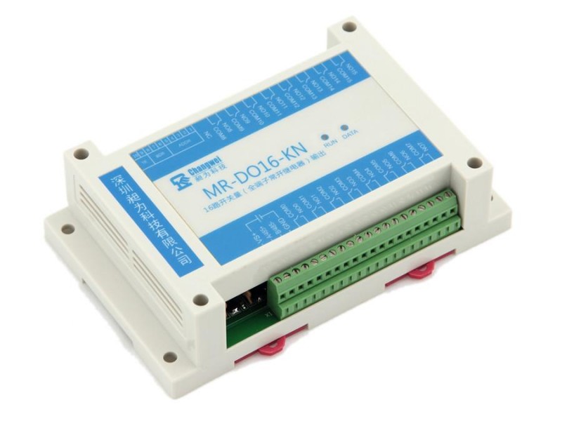 MR-DO16-KN為RS485型隔離16通道開(kāi)關(guān)量輸出(DO)信號(hào)控制設(shè)備,2組相互隔離的開(kāi)關(guān)量(No、COM全引腳常開(kāi)型繼電器)輸出通道,觸點(diǎn)容量為3A/250VAC、/30VDC,可實(shí)現(xiàn)小功率負(fù)載共電源負(fù)的遠(yuǎn)程控制。
