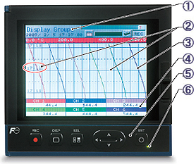 執(zhí)行記錄開始/停止、顯示切換、設(shè)定、數(shù)據(jù)顯示/變更等的按鍵。