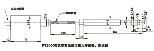 三、PT2000帶軟管高溫熔體壓力傳感器及變送器: