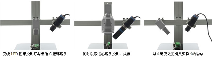 交線LED投影圖形、投影燈基于交線條件,集成了的傾斜臺裝置,保證圖形傾斜時焦點固定不變。不僅如此,內(nèi)置的對焦機制提供了的光學效果,使投影燈的光路能與任何C接環(huán)鏡頭的入射光瞳有效結(jié)合。