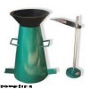 坍落度的測試方法:用一個上口100mm、下口200mm、高300mm喇叭狀的塌落度桶,灌入混凝土分三次填裝,每次填裝后用搗錘沿桶壁均勻由外向內(nèi)擊25下,搗實后,抹平。然后拔起桶,混凝土因自重產(chǎn)生塌落現(xiàn)象,用桶高(300mm)減