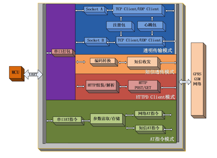 網(wǎng)絡透傳模式HTTPD Client模式短信透傳模式AT指令模式