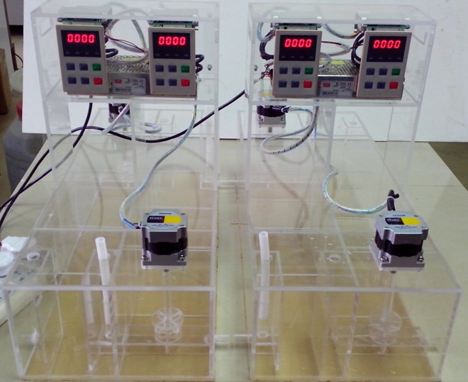 主要結(jié)構(gòu):整個系統(tǒng)包括槽體、攪拌器、電機、控制器(另可加裝溫控系統(tǒng)),其中機體有兩個進料口、兩個出料口。