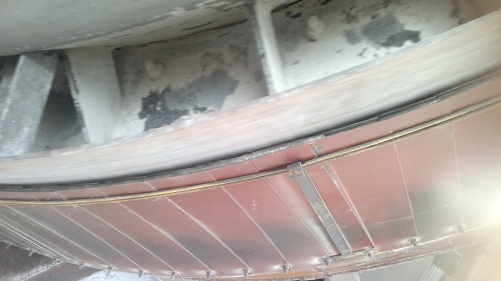 魚鱗片式密封 以¢4800窯為例(單位mm)密封椎體法蘭為¢5400,周長18956,孔距90,密封板每片130mm,厚4mm(1-2年期),環(huán)周使用189片,每片三角間隙4×130÷2=260mm²×189片環(huán)周間隙=49140 mm²,當然增加摩擦厚度能提高使用年限,但同時也增大了三角漏風間隙。窯密封張椿琪 |