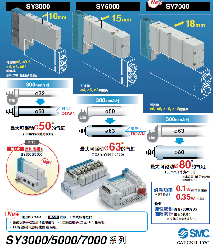 SMC氣動(dòng)元件從品種上看,日本一家公司有6500個(gè)品種,我國(guó)只有它的1/5。產(chǎn)品性能和質(zhì)量水平的差距也很大。 由于氣動(dòng)技術(shù)越來越多地應(yīng)用于各行業(yè)的自動(dòng)裝配和自動(dòng)加工小件、特殊物品的設(shè)備上,原有傳統(tǒng)的氣動(dòng)元件性能正在不斷提高,同時(shí)陸續(xù)開發(fā)出適應(yīng)市場(chǎng)要求的新產(chǎn)品,使氣動(dòng)元件的品種日益增加,其發(fā)展趨勢(shì)主要有以下幾個(gè)方面: 體積更小,重量更輕,功耗更低.在電子元件、藥品等制造行業(yè)中,由于被加工件體積很小,勢(shì)必限制了氣動(dòng)元件的尺寸,小型化、輕型化是氣動(dòng)元件的一個(gè)發(fā)展方向。國(guó)外已開發(fā)了僅大拇指大小、有效截面積為0.2mm2的超小型電磁閥。能開發(fā)出外形尺寸小而流量較大的元件更為理想。為此,相同外形尺寸的閥,流量已提高2~3.3倍。有一種系列的小型電磁閥,其閥體寬僅10mm,有效面積可達(dá)5mm2;寬15mm,有效面積達(dá)10mm2等。