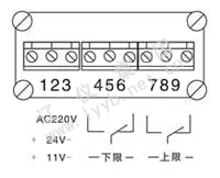 ●安裝儀表時不能用力擰外殼,必須用扳手?jǐn)Q板口部分。 ●儀表安裝完畢確認(rèn)無誤后,方可通電。如有異常應(yīng)立即斷電。 ●上限設(shè)定:按住上限設(shè)定按鈕,顯示為上限設(shè)定值,同時上限調(diào)節(jié)燈亮,可調(diào)節(jié)該燈下的電位器為上限設(shè)定值;下限設(shè)定的方法與上限設(shè)定相同。 |