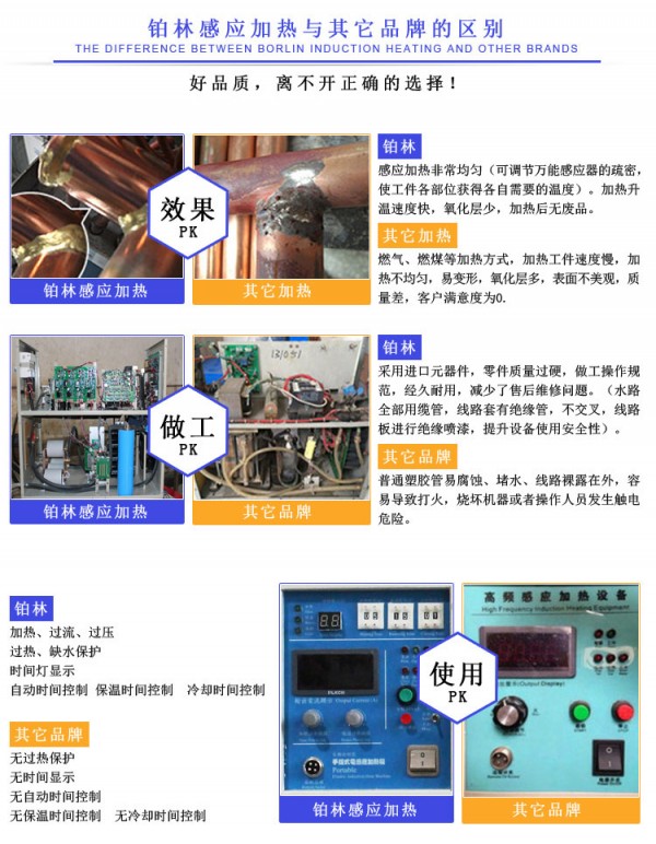 優(yōu)良品質(zhì),核心部件采用德國原裝進口,設備更加穩(wěn)定、,使用壽命比普通品牌高出兩倍,鉑林感應加熱設備主要元器件,如IGBT模塊、電阻、二管等均采用德國原裝進口產(chǎn)品,使設備的使用壽命更長。