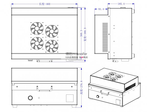 出光面積200*200mm 波長365-415nm 高度15mm 照度>2000mW/cm2 數(shù)秒瞬間固化