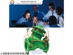 當(dāng)管道從進(jìn)水端給水時,水流經(jīng)過針閥進(jìn)入主閥控制室,出口壓力通過導(dǎo)管作用到導(dǎo)閥上,當(dāng)出口壓力高于導(dǎo)閥設(shè)定值時,導(dǎo)閥關(guān)閉,控制室停止排水,此時主閥控制室壓力升高并關(guān)閉主閥,停止供水。當(dāng)出口壓力降到導(dǎo)閥設(shè)定壓力時,控制室向下游排水,由于導(dǎo)閥的排水量大于針閥的進(jìn)水量,主閥控制室壓力下降,進(jìn)口壓力使主閥開啟,穩(wěn)定狀態(tài)時,控制室進(jìn)水,排水相同,開度不變,出口壓力不要,調(diào)節(jié)導(dǎo)閥彈簧即可設(shè)置出口壓力。