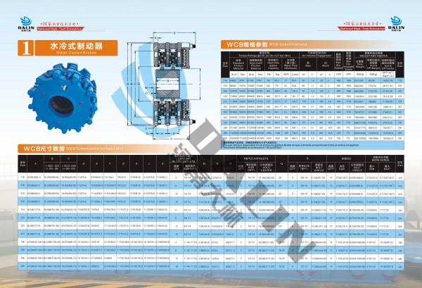 WCB系列水冷盤式制動器有單摩擦片和多摩擦片兩種。摩擦盤的數(shù)量和直徑可以從制動類型中看出。例如,WCB324表示3個直徑為24英寸的摩擦盤。