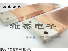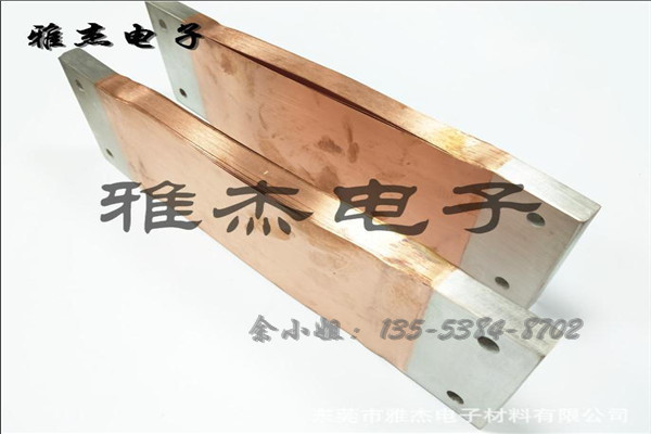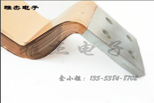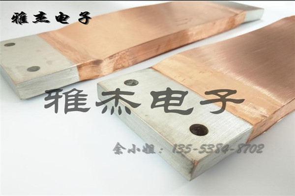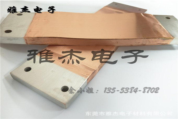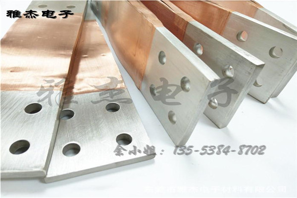 東莞市雅杰電子材料有限公司銅母線伸縮節(jié)經(jīng)氬弧焊工藝進行熔壓焊接,兩端硬銅排,中間軟銅片。整體或表面可鍍銀、鍍錫處理。