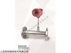 熱式氣體質(zhì)量流量計是基于熱擴散原理而設計的,該儀表采用恒溫差法對氣體進行準確測量,傳感器部分由兩個基準級鉑電阻溫度傳感器組成,儀表工作時,一個傳感器不間斷地測量介質(zhì)溫度 T1;另一個傳感器自加熱到高于介質(zhì)溫度 T2,它用于感測流體流速,稱為速度傳感器。該溫度ΔT=T2-T1,T2>T1,當有流體流過時,由于氣體分子碰撞傳感器并將 T2的熱量帶走,使 T2 的溫度下降,若要使ΔT 保持不變,就要提高 T2 的供電電流,氣體流動速度越快,帶走的熱量也就越多,氣體流速和增加的熱量存在固定的函數(shù)關系。熱式氣體質(zhì)量流量計具有體積小、數(shù)字化程度高、安裝方便,測量準確等優(yōu)點。