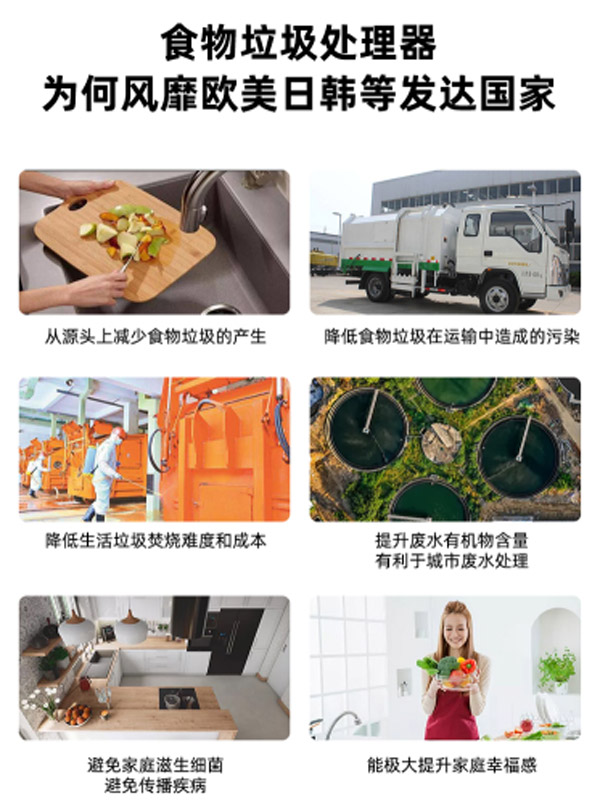 廚余垃圾處理器從根本顛覆以前拋扔垃圾處理方式,有效徹底解決廚余垃圾煩惱,被稱為:“廚房的第二次革命”。據(jù)實(shí)驗(yàn)證明,廚余垃圾處理器可以消滅禽獸小骨、魚骨、蛋殼、菜葉、果皮、咖啡渣、殘羹剩飯等食品垃圾,特別是在春、夏、秋三個(gè)季節(jié),食物垃圾處理器可以有效地避免食物垃圾因儲(chǔ)存而滋生細(xì)菌、蛀蟲和異味,從而優(yōu)化了家居環(huán)境,對(duì)于人體的健康和環(huán)境的保護(hù)都有很大的好處。從環(huán)保的角度來(lái)言,食物垃圾處理器是減少家庭垃圾好幫手,還可以減少需要填埋的垃圾量。據(jù)統(tǒng)計(jì),減少的幅度可以達(dá)到75%。