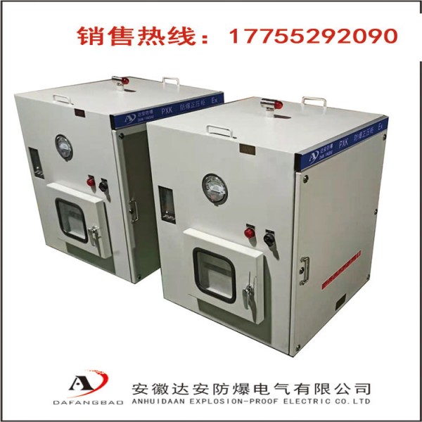 正壓外殼是由2.5mm不銹鋼板經(jīng)折邊、拼焊而成的氣密外殼。由于它能保持內(nèi)部保護氣體的壓力高于外圍爆炸性氣體環(huán)境的壓力,從而能有效的阻止外部的爆炸性氣體混合物進入外殼內(nèi)部。在正壓外殼正面明顯區(qū)域有“ExpxⅡCT4”紅色標志牌。