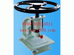 一、用途 本機(jī)供橡膠廠及科研單位進(jìn)行拉力試驗(yàn)前沖切標(biāo)準(zhǔn)橡膠試片用。對(duì)于類似材料,本機(jī)亦可沖切。 二、主要技術(shù)參數(shù) 1、沖切行程 25mm 2、工作臺(tái)尺寸 320mm×230mm 3、外形尺寸 320mm×450mm×515mm 4、重量 100Kg 三、結(jié)構(gòu)簡述 沖片機(jī)主要由:手輪(1),三頭絲桿(2),機(jī)座(3),彈簧(4),軸(5),軸架(6),平臺(tái)(7)。(見圖1)機(jī)身螺孔中裝有三頭絲桿,絲桿的上端裝有手輪,作旋轉(zhuǎn)絲桿用其下端軸架中套有滑動(dòng)的軸,上端利用彈簧拉緊,下端平臺(tái)上可換不同型號(hào)的切刀。當(dāng)旋轉(zhuǎn)手輪時(shí),三頭絲桿經(jīng)滑動(dòng)的軸帶動(dòng)切刀,可作往復(fù)運(yùn)動(dòng),以達(dá)到?jīng)_切試片之目的