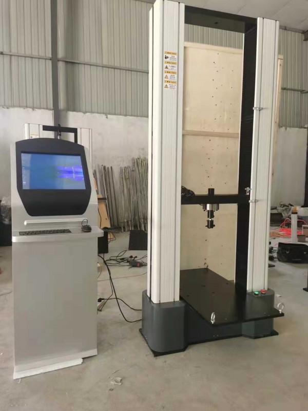 主機(jī)由上橫梁、移動(dòng)橫梁與工作臺(tái)通過(guò)立柱、滾珠絲杠連接成剛性落地式框架結(jié)構(gòu)。上橫梁與移動(dòng)橫梁之間安裝有拉伸附具,可對(duì)金屬或非金屬材料試樣進(jìn)行拉伸、撕裂等試驗(yàn);移動(dòng)橫梁與工作臺(tái)之間安裝有壓縮、彎曲附具,可對(duì)金屬或非金屬材料試樣進(jìn)行壓縮及彎曲等試驗(yàn)。