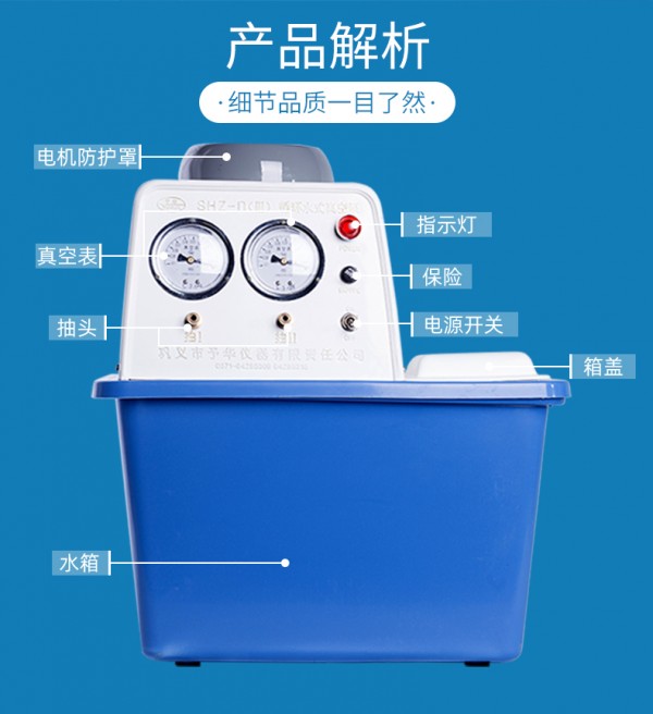 循環(huán)水真空泵是一ci性成型外殼,縮小體積改進而成,具有體積小,重量輕,外型美觀等特點,雙表、雙頭抽氣,四表四抽頭,便于教師直觀演示,學生亦可在任意一面開關(guān)機。