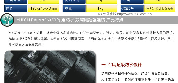 俄羅斯Yukon育空河 Futurus PRO 16x50 軍用雙筒望遠(yuǎn)鏡 測距防水 超高清 商品編