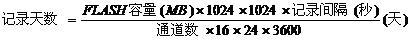 4、記錄時間:各通道記錄時間的長短與FLASH存儲器容量、輸入點數(shù)及該通道的記錄間隔有關(guān),計算公式如下: