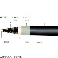 KVV22 銅芯聚氯乙烯絕緣聚氯乙烯護套鋼帶鎧裝控制電纜 450/750 4-37 0.75-10 敷設(shè)在室內(nèi),電纜溝、管道直埋等能承受較大機械外力的固定場合