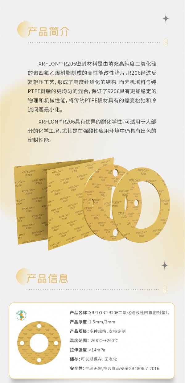 XRFLON?R206密封材料是由填充?純度?氧化硅的聚四氟?烯樹脂制