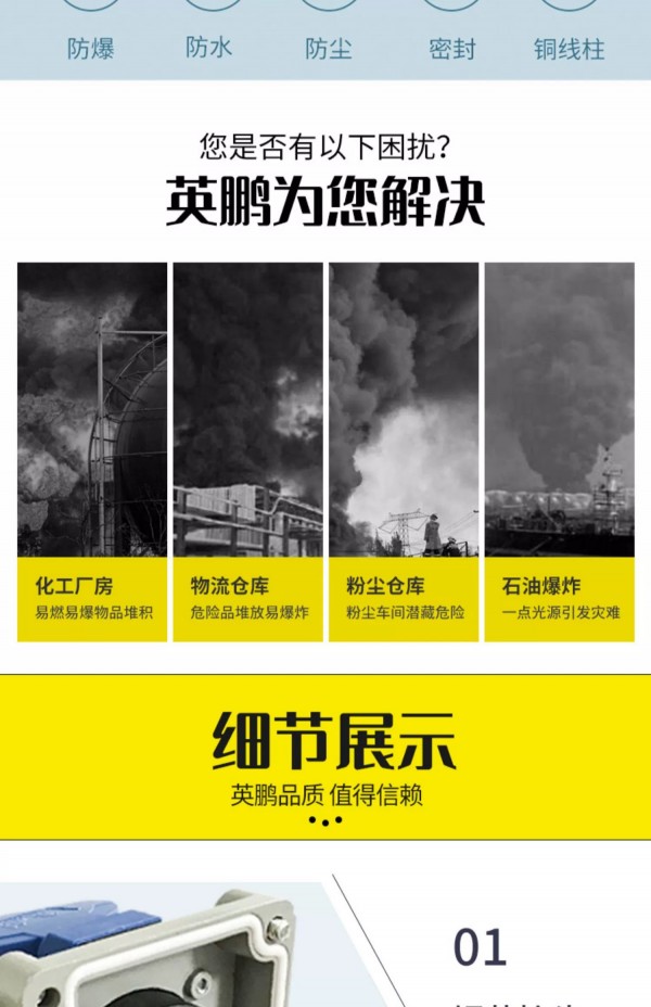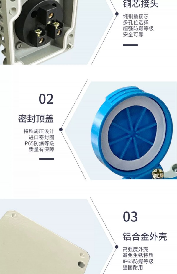 五大優(yōu)勢(shì):防爆、防水、防塵、密封、銅線柱