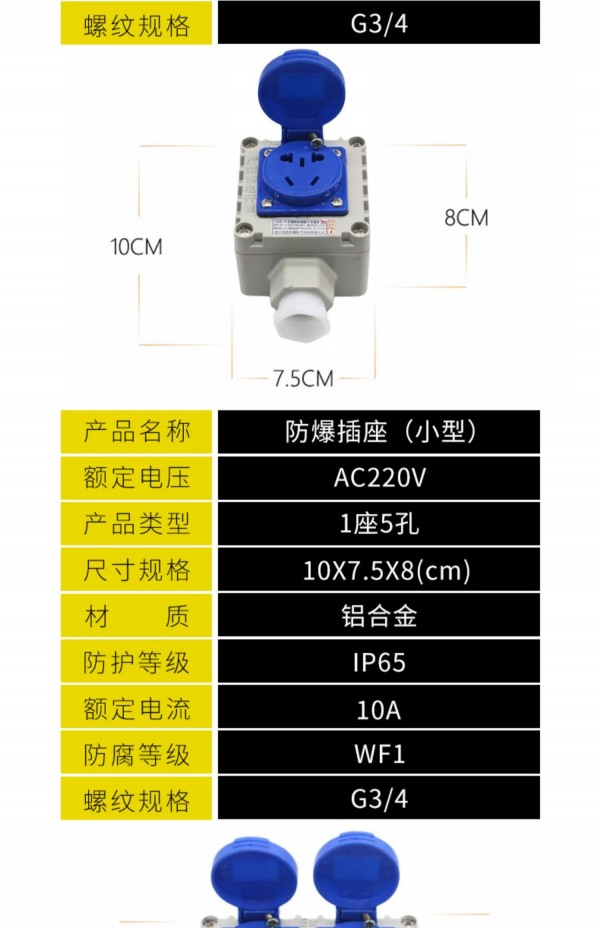 英鵬防爆插座型號(hào):一座五孔擁有銅芯接頭,密封頂蓋,鋁合金外殼,可拆卸接線口