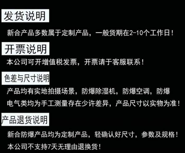 所有全新風(fēng)防爆空調(diào)出廠時,均附有全套產(chǎn)品技術(shù)資料和安裝使用說明書,請用戶務(wù)必嚴(yán)格按說明書的要求進(jìn)行安裝和使用;