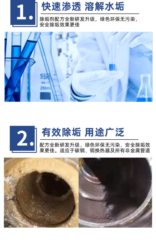3.適應(yīng)于碳鋼,銅換熱器,及所有非金屬管道;不能用于不銹鋼。