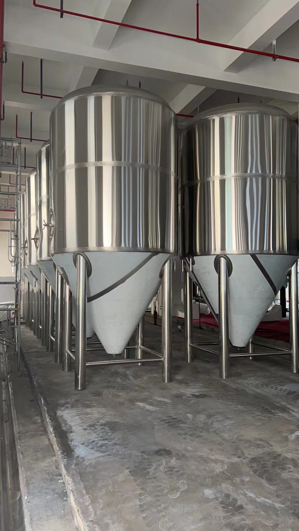 發(fā)酵系統(tǒng)說(shuō)明:此階段為啤酒釀造階段。具體流程為:投料-糖化-過(guò)濾-煮沸(添加酒花)-回旋沉淀-麥汁熱交換,然后泵入發(fā)酵罐進(jìn)行發(fā)酵。啤酒發(fā)酵罐存儲(chǔ)12-15天時(shí)間即可發(fā)酵儲(chǔ)存成熟。